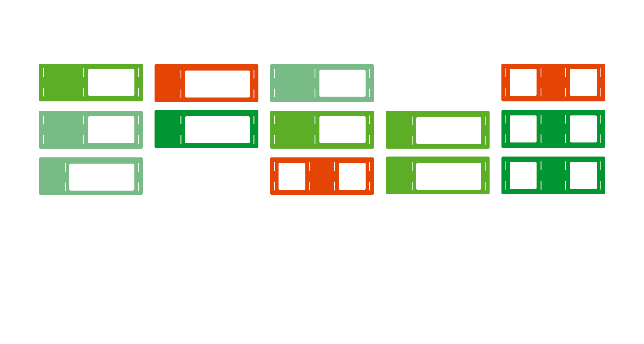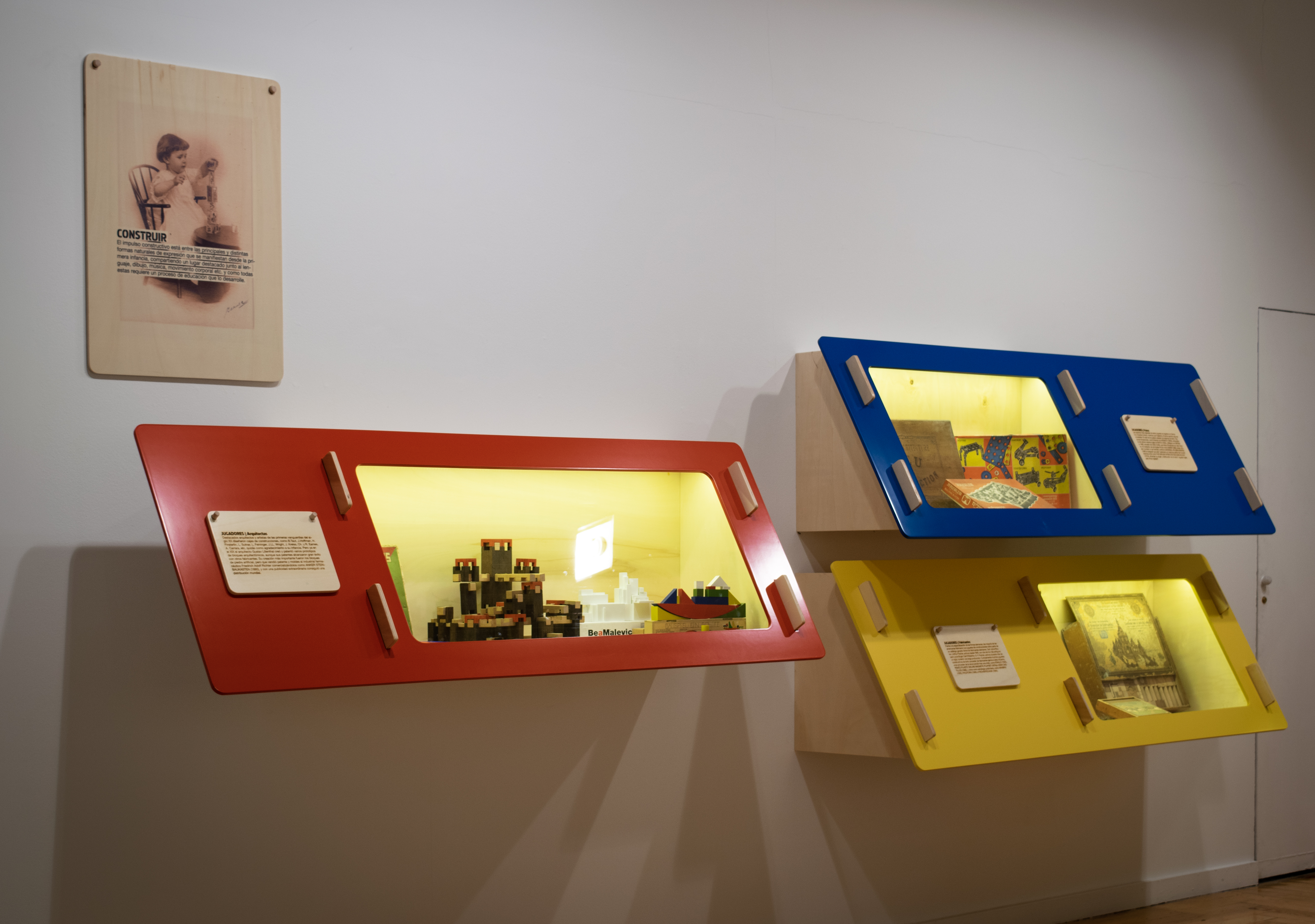 El conjunto se concibe como un juego de construcción con 4 colores básicos y 6 colores secundarios, que se combinan formado distintas paletas para indicar las distintas secciones de la exposición.