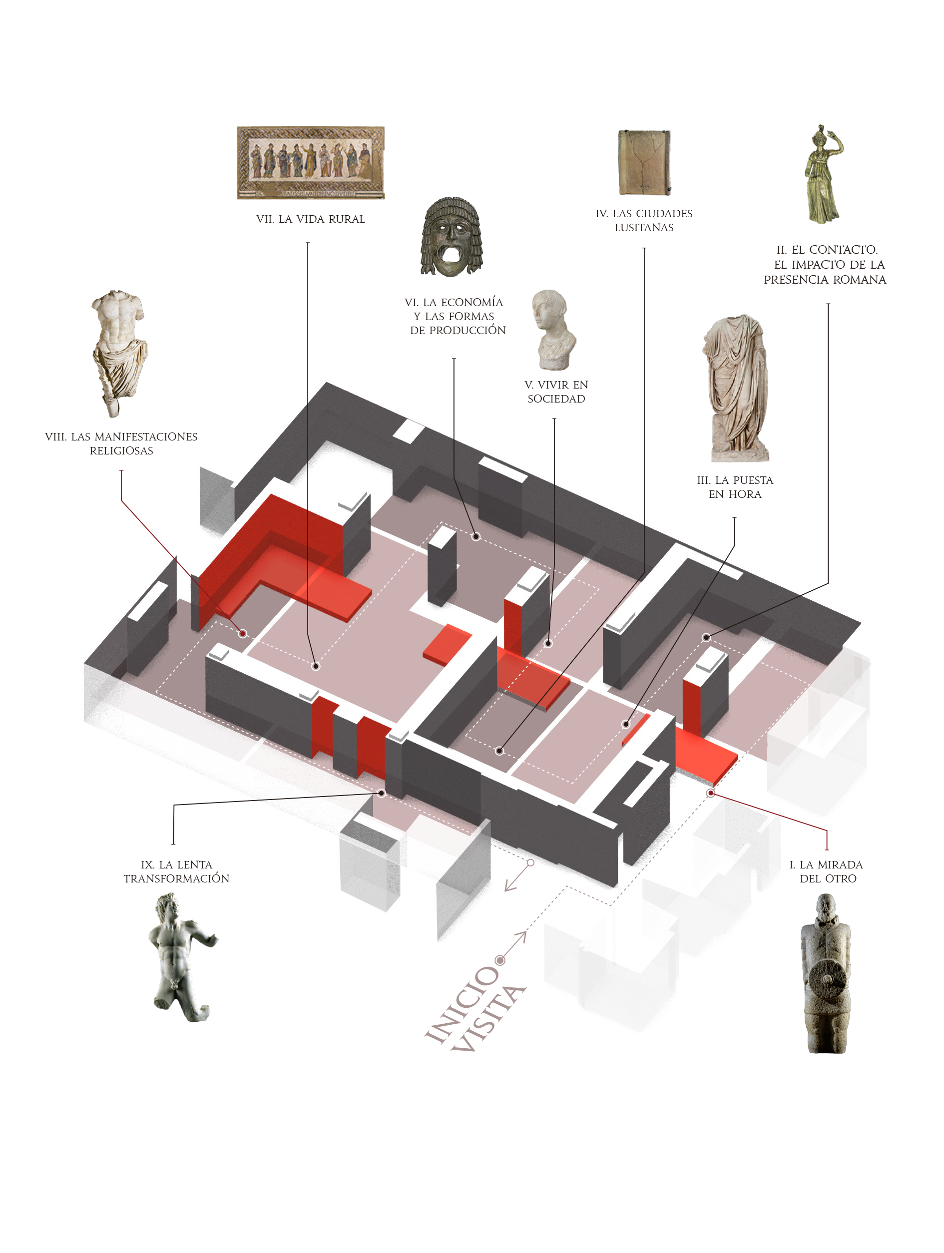 Diseño museográfico para la tercera versión de una muestra con numerosos tesoros nacionales que salían por primera vez de Portugal. Para su montaje en el Museo Arqueológico Nacional de Madrid se me encarga el rediseño completo de muestra. La narrativa principal se articula a través de la construcción de una gran plataforma/cordón umbilical que hace de línea temporal fracturada, lo que permite el continuo flashback de conjunto.